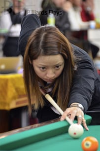 去年もあそこで撞いていますが、やっぱりマグの風景に慣れておきたいなと思って。そして、久保田さん(知子。現JPBAプロ)に撞いてもらいました。