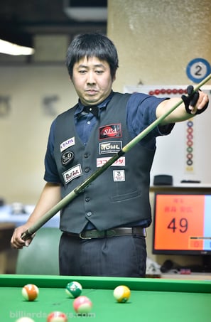「その時々で一生懸命撞けていたとは思うので、後悔するということはないんですけど、いやぁ、まだまだ技術が足りないですね(苦笑)。展開的に自分がミスした後に相手もやってくれたりして、なんとか勝てたという感じです。特に1回戦は僕が何度も失敗してました。今回、5試合中3試合をYouTube Live配信テーブル(京都『ピカソ』の2番台)でプレーしたんですけど、以前からあのテーブルはちょっと渋いというイメージがあり、今回もその感覚のまま撞いてしまって、気持ちの面であまり上手く合わせられなかったなと思います」