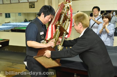「それは少し意識していました。2014年4月に球聖を失って(大坪選手に敗退)、その年の9月に名人になりました(和田敏幸選手〈現JPBAプロ〉に勝利)。同じ年ではありますけど、間が5ヶ月あって同時ではなかったので。これまで2つ同時に在位していたのは、高橋さんと栗林さんのお二人だけ。その偉大なお二人に……、いや、お二人はプロの世界でもすごい成績を出している方々なので、並んだという表現は正しくないですけど、3人目として続くことが出来てやっぱり嬉しいです」