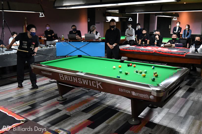 喜島:ミスして自分からおかしくなるのは嫌だったので、「無理に攻めない」という方針でいましたし、それはゲームメイク的には良かったと思います。今回は自分の中で「ミスを増やさないこと。もしミスをしてもできるだけ引きずらないようにすること」を意識していましたが、その意味ではよく撞けたと思います。あとは、ブレイクは結構良かったと思います。前日練習の時に『ブラックジャック』ブレイクキューの方でブレイクしたら良い手応えがあって、それは本番でも出せたと思います(※喜島名人はプレーキューと同じくブレイクキューも2本持ち込んでいた)。