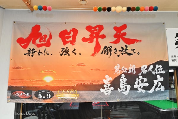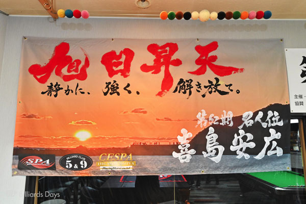 喜島:今回も『セスパ東大宮』と『5&9』のお客さん、SPAの皆さん、遠くは愛知など他県から応援に来られた方々、そして大会運営の方々に感謝しています。また今回は、レイリーさん(書道家/パチンコパチスロライター)に素晴らしい横断幕を書いていただき、力を感じました。ありがとうございました。これからもできるだけ長くプレーできるように健康にも気を配って頑張っていきたいと思います。今後とも応援よろしくお願いします。