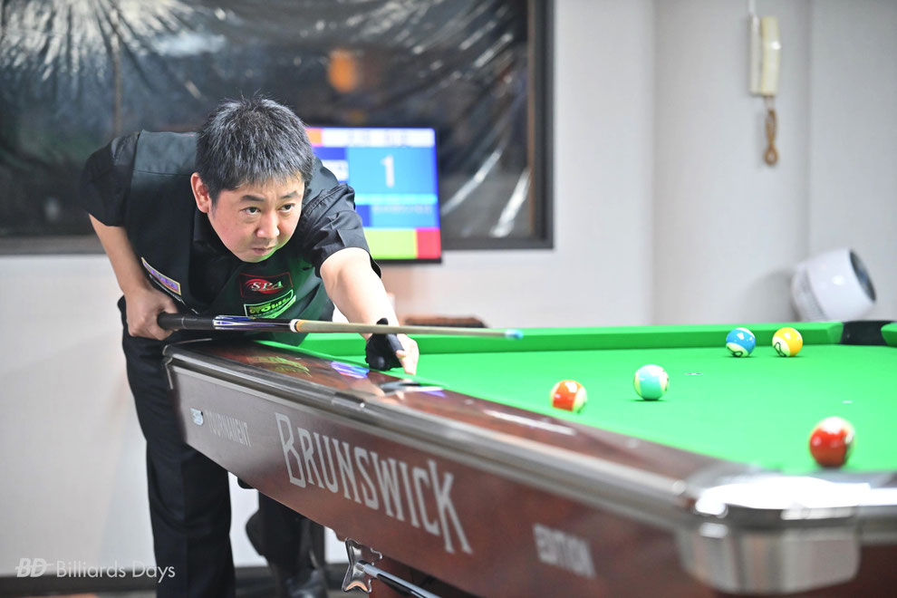 喜島:そうですね。補給して少し回復できて、終盤また集中しきれる場面が増えたと思います。でもそれは、大坪さんが後半疲れ始めてきて僕の撞き番がちょっと増えてきたことも関係していると思います。それも含めて僕の方が展開が良かったかなと。周り(SPAの仲間など)にも結構言われましたね。後球(※喜島選手がミスした後の形)がかなりしんどい球ばかりだったので(苦笑)。