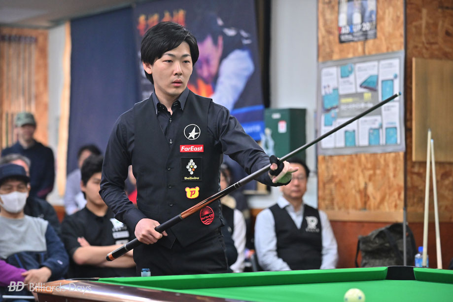 小宮:朝イチの立ち上がりが遅いのはいつもなんでしょうがないんですけど、第2セットからしっかりと気持ちを入れて、3セット連続で取れたのが大きかったです。毎年球聖位決定戦を撞く中で、ダメな時に何がダメなのか、そこをどう調整するのかがパッと整理できて切り替えられるように年々なってきてると思います。第5セットは自分のスイッチが切れた訳じゃないですけど、自分の中では納得して取られたというか。だから、ダメージも少なかったですし、次の第6セットはずっとピリッとした状態で撞けました。どのセットも自分がやってることを客観的に見られた感覚があるので、そこが成長しているなと思います。