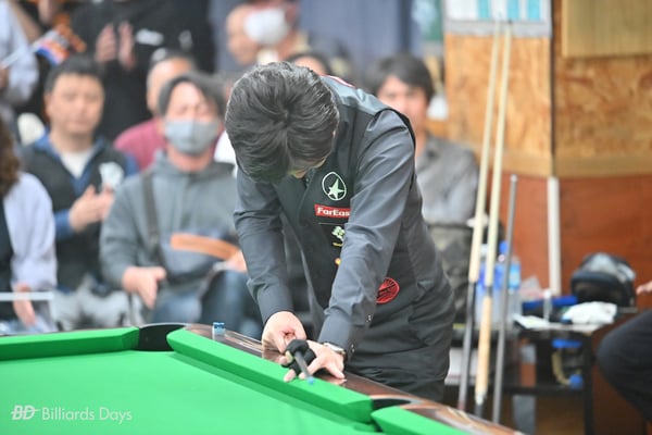 小宮:今年が一番練習できてなかったです(苦笑)。『エニシング』に行けたのは試合の前日(『挑戦者決定戦』があった20日〈土〉)で、それが結構久しぶりでした。挑戦者決定戦を撞いていた両選手(増渕享士・西拓也)の球を生で少し見ることができたので参考になりました。あとはしっかり練習したというより、ポケットの受け方とか去年とのコンディションの違い、新ラシャ特有の動きを確認したぐらいですね。それ以外は、その前の木曜と金曜に仕事帰りに別の場所で3時間ぐらい撞きました。