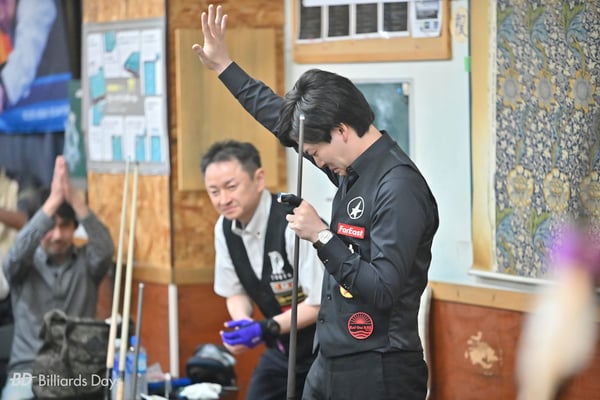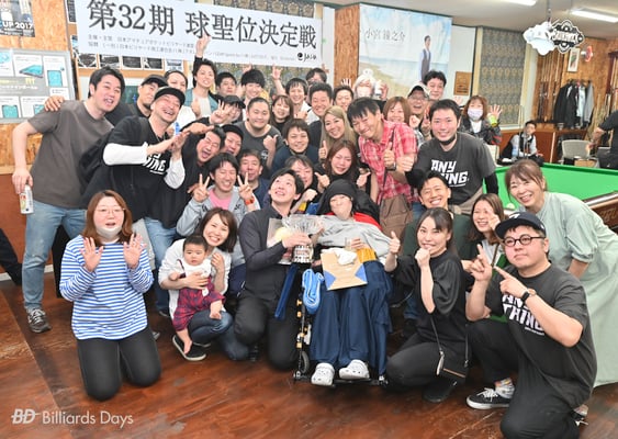 小宮:第7セットの終盤にパネちゃん(※会場となった『エニシング』所属の近光翼アマ。闘病中)がお店に入って来てからですね。パネちゃんは今までの球聖戦もそうだし、お店で何かイベントがあるといつもご飯やおつまみを用意してくれたり、お客さんを盛り上げてくれていました。僕が球聖になるだいぶ前、『エニシング』に行き始めた頃にはもうすでに何年もいましたし、よく一緒に球も撞きました。そういった色々なことがパネちゃんの姿を見た時にフラッシュバックして……。負けられないし、球を外すところは見せられない。いろんな思いが溢れて来てああなっちゃいました。