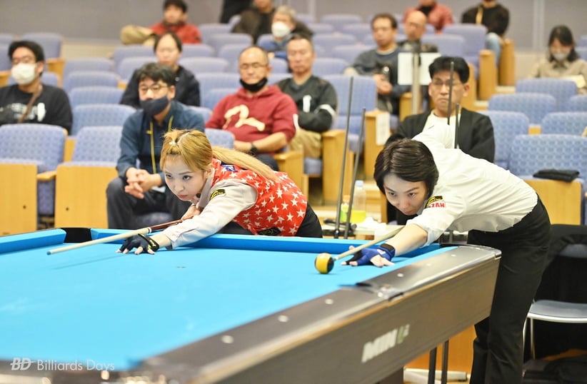 平口:準決勝では私も河原プロも韓国選手と対戦していたので、「2人とも勝ち上がって最後は日本人対決になるのがいいな」と思ってました。実際そうなったことは嬉しかったんですけど、私は河原プロとの対戦成績は良くないし(※ビリヲカによると5勝13敗)、「優勝するためには河原プロを倒さないといけないのか……」とも思いました。正直言って私はまだ河原プロのライバルというポジションには来られていないという気持ちもあります。でも、「私には私の良いところもあるから」と自分に言い聞かせて、自分を信じて撞くことにしました。