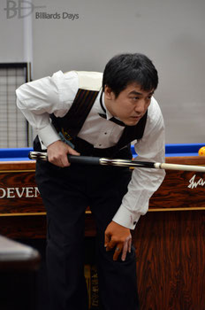 ええ、彼はベトナムでNo.2、3ぐらいの若手で、あの場でも丁寧に撞いてましたね。僕は彼のペースに引き込まれないように我慢して撞いてました。自分のリズムを崩さないことを心掛けて。そうしたら、中盤かなり良く撞けたんですよ。上手く撞けすぎたと言っても良いぐらいに。ランが出て、それでパッと逆転できた。
