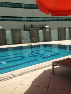 「ホテルのプール。ヨーロッパ選手なんかはみんな試合のある朝でもプールやジムで汗かいてました。これは日本選手も見習っていかないとと思いましたね。やっぱり身体が全然違います(笑)」
