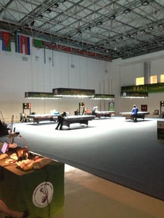 「試合会場。中は凍えるくらい冷房が効いてましたね。テーブルコンディションは僕が撞き出した時はだいぶ撞きやすい感じでしたー」(青木亮二。以下同)