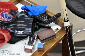 相手が撞いている間、手を乾かしていたのかな。