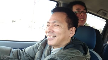 助手席に座った川本比呂志プロ(JPBA)が、