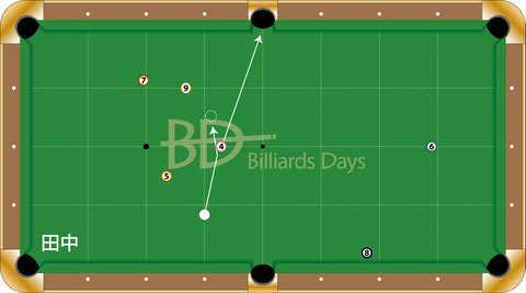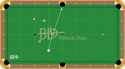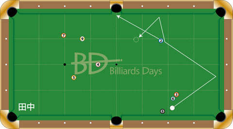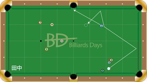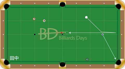 初めは2クッションのラインを見ていた田中。