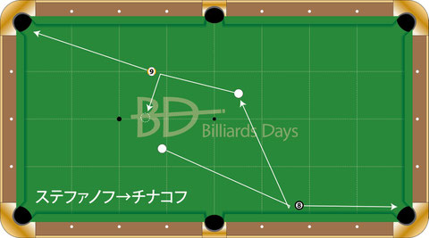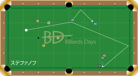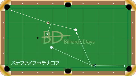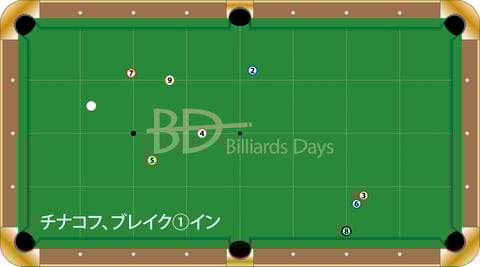 チナコフ、7番を入れて、1クッションで8番へ。