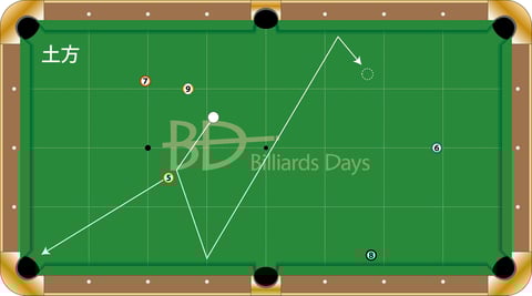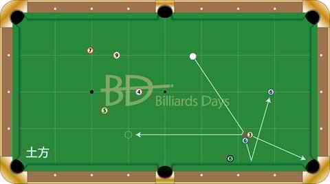 土方、5番を入れて2クッションで6番へ。