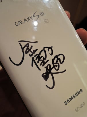 サムソンのスマホにサインをしてもらって、