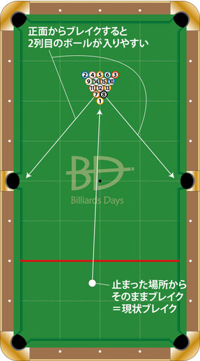 特に2列目のボールがサイドポケットへ