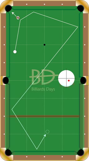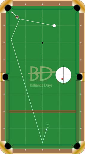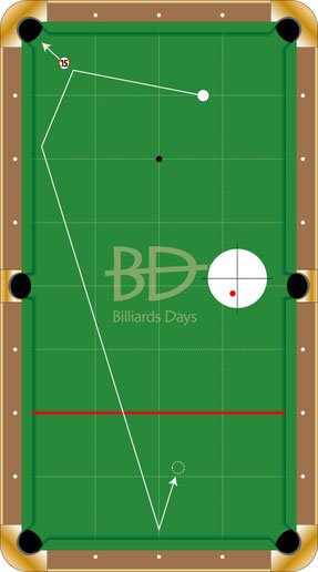 B:順下3~4クッション(撞点:右下)。↓