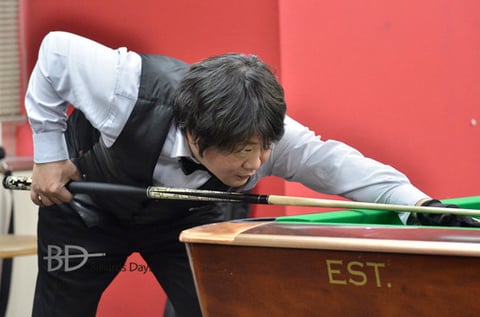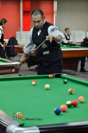 高井田ビリヤード所属の杉原匡プロ。