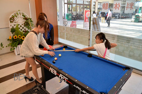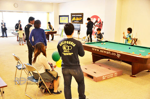 多くの家族連れがビリヤードを体験。