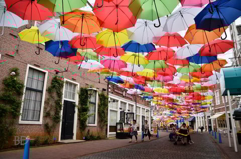一面の傘、すごいなぁ。