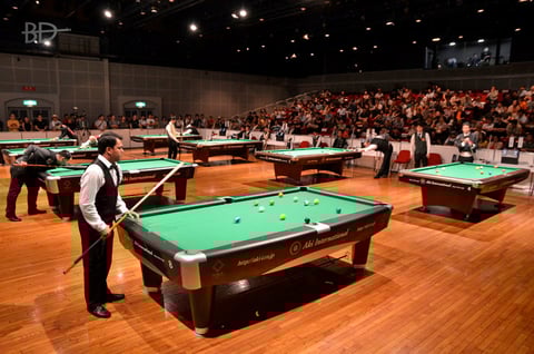 ビリヤードの試合会場では