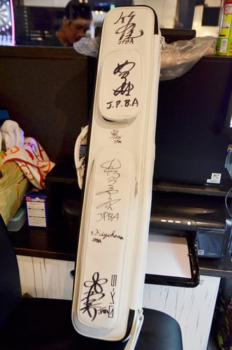 サインだらけのキューケース。