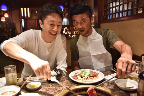 息の合った焼き肉ぶりを見せる