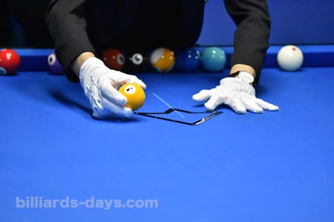 ①に対して真っ直ぐ手球を当てるのではなく、