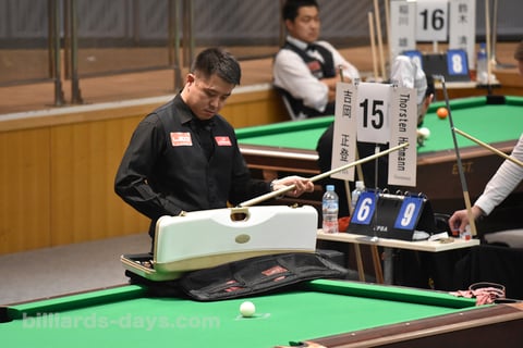 相手に、まるで練習のように撞いてました。