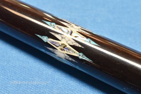 このインレイの青(トルコ石)と白(樹脂)と