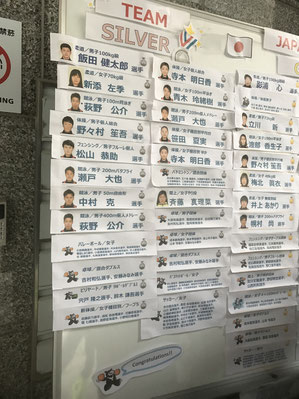 選手村宿舎の1階の掲示板。