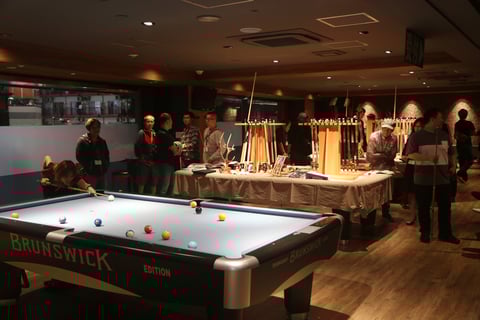展示には、ビリヤード台3台と卓球台1台を使用。
