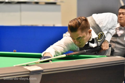 次は、障害物と狙う的球がさらに近くて、