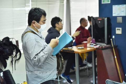試合前に、虎の巻(?)を熟読する
