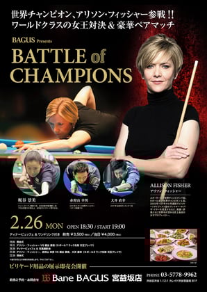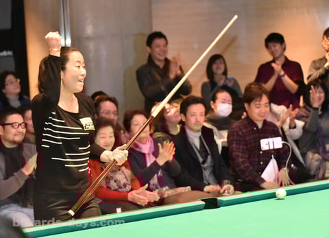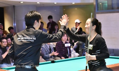 「こういうイベントをバグースさんが開催してくださって、自分が参加出来たことを嬉しく思います。見て楽しむビリヤードの良さを感じていただけたら私も嬉しいです。アリソンが東京に来てくれたおかげで実現したことなので、アリソンに『ありがとう!』ですね」