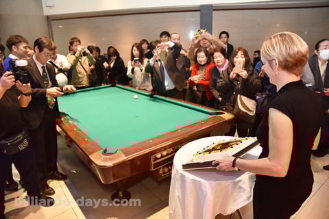 「何を置いても先に、ノリコさん(『関東オープン』のスポンサーでもある(株)アドバンスの前山紀子さん)に感謝の気持ちを述べさせてください。ビリヤードを愛するノリコさんが私を東京に招いてくれたおかげで素晴らしい旅になりました。ありがとうございました。