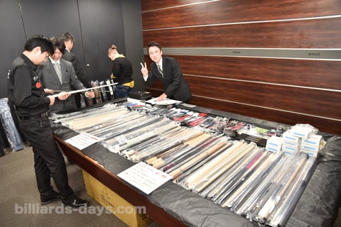 ビリヤードアイテムの展示即売会も開催。