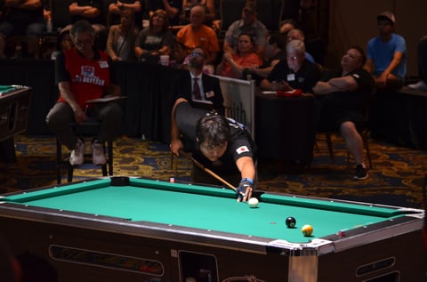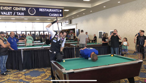 去年初めてラスベガス大会に出て、全く何もわからないままあっという間に終わってしまい、悔しさと物足りなさしか残りませんでした。ただテーブルサイズの違いはとても大きいと感じたので、自分のお店(『ツェット九条』)に7フィート台を2台入れました。そこでたくさん練習した甲斐があったと思います。