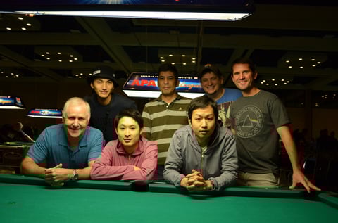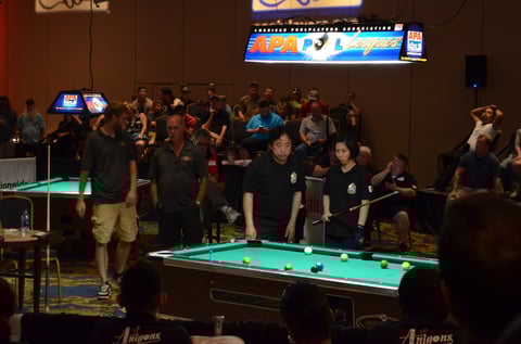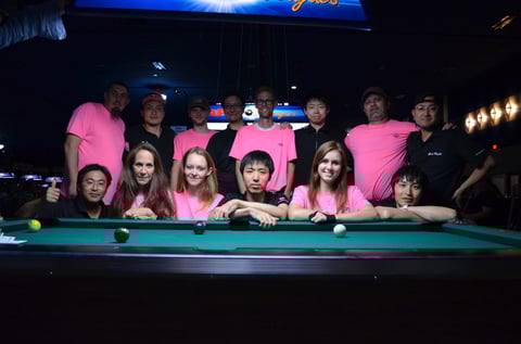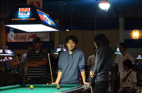 最初の2年間はいわゆる“負け-負け”。初勝利を挙げた2010年も1勝2敗で、やはり世界最大のプールトーナメント、アメリカンプールの壁は厚いなと思ったものです。2011年に東大撞友会チームがBEST32まで進出して以降、日本勢の勝率も上がりはじめ、いつかは最終日、決勝戦の舞台へと、夢見ることができるようになってきました。