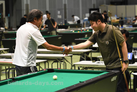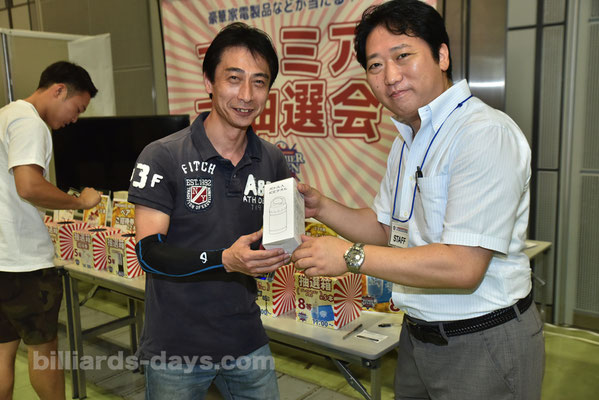 田嵜直選手(SL9 山水ビリヤード)に、