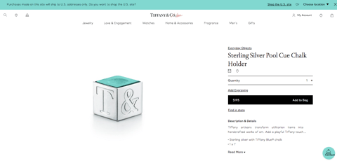 「ティファニーの職人が実用品をハンドクラフトの芸術作品に生まれ変わらせました。ゲームルームにティファニーの息吹を加えるこの木製ラックとボールセットは、クラシックデザインを現代的にアップグレードしたもの。ラックはオーク材を用いて精巧に作られ、個人の銘を入れるのに最適な、取り外し可能のスターリングシルバープレートが付いています。また、カスタムメイドの『ティファニー・ブルー』カラーのボールには、細めのタイプライターフォントで数字が入れられています」