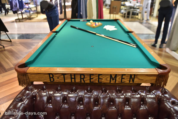 「弊社はストレッチパンツに特化した専門ブランドとして展開しており、『何か新しい試みを』ということを常に考えております。ビースリーMENを東武百貨店池袋店にオープンするにあたり、什器を考えている過程で出てきたアイディアが『ビリヤードテーブル』でした。部内にビリヤードに詳しい者はおらず、私自身も遊びでやったことがある程度でしたが、ビリヤードテーブルはショップイメージに合うんじゃないか、面白そうということですんなり決まりました」