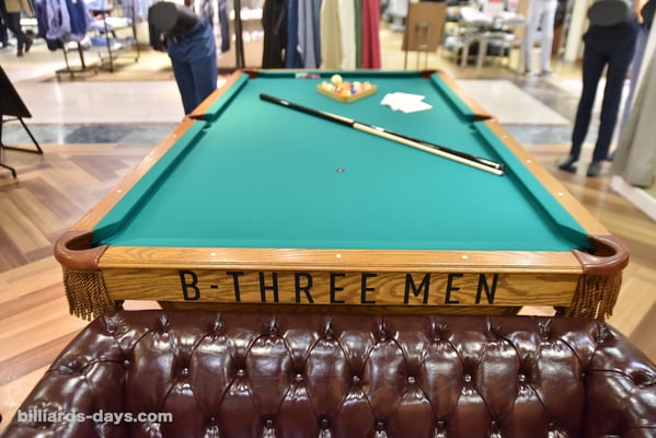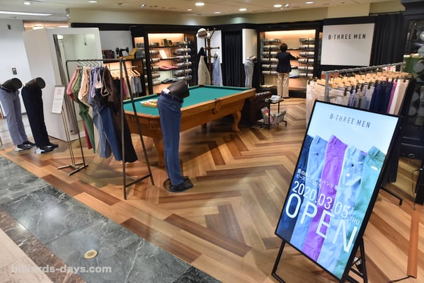 「弊社はストレッチパンツに特化した専門ブランドとして展開しており、『何か新しい試みを』ということを常に考えております。ビースリーMENを東武百貨店池袋店にオープンするにあたり、什器を考えている過程で出てきたアイディアが『ビリヤードテーブル』でした。部内にビリヤードに詳しい者はおらず、私自身も遊びでやったことがある程度でしたが、ビリヤードテーブルはショップイメージに合うんじゃないか、面白そうということですんなり決まりました」