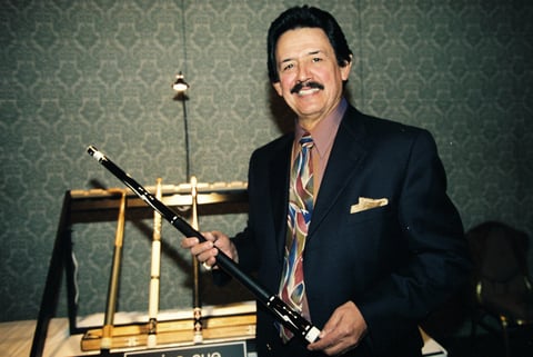 自ら製作したキューで試合にも出場していた。