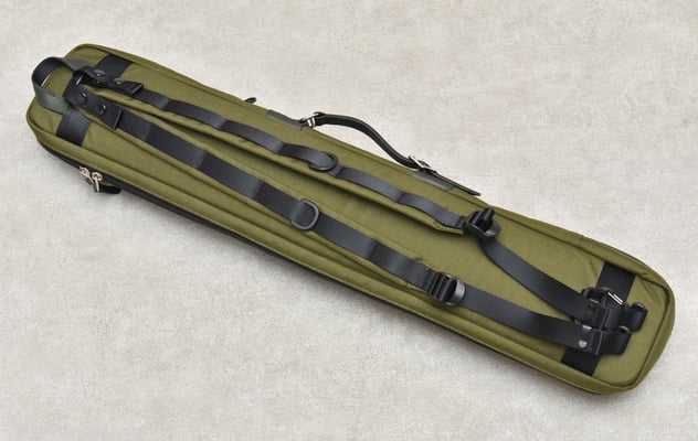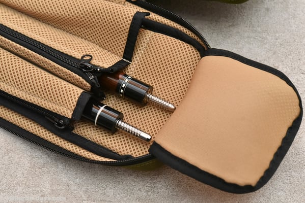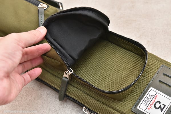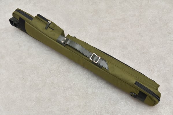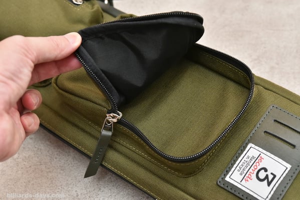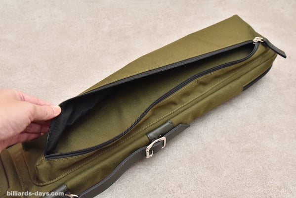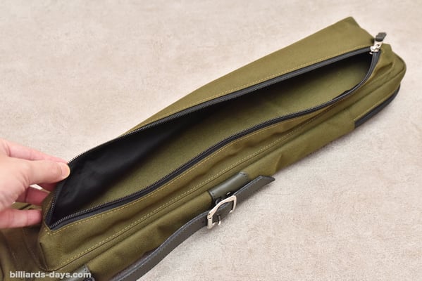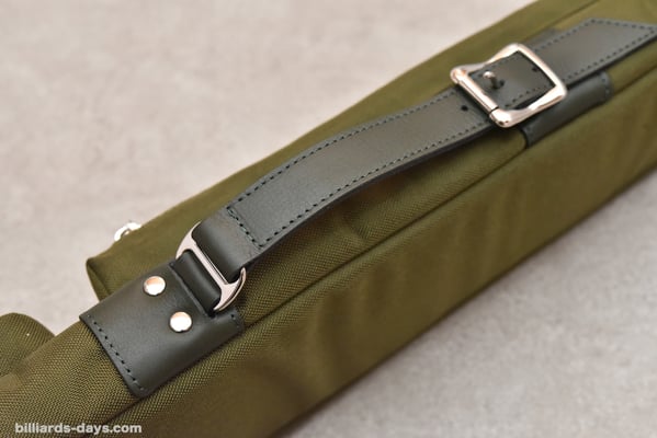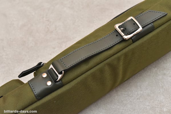 「今回のキューケースの一番のポイントはこのダブルストラップだと思います。これはキューショップジャパンさんから一番先にリクエストをいただいた部分です。ハードケースではダブルストラップタイプを販売していますが、ソフトケースでは初になります。ストラップは簡単に取り外せて、シングルストラップにもなるので、お客様の好みや使用する状況によって使い分けていただければと思います」
