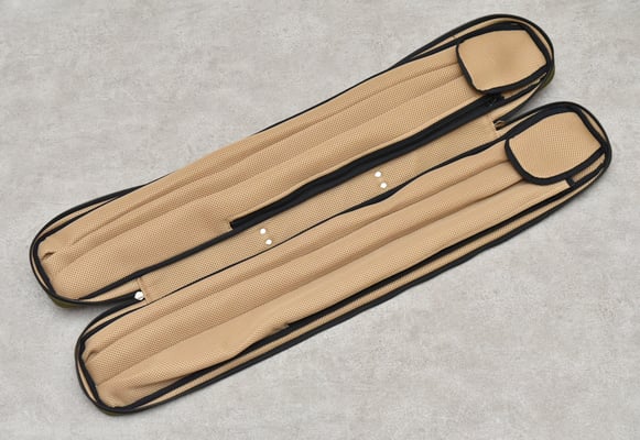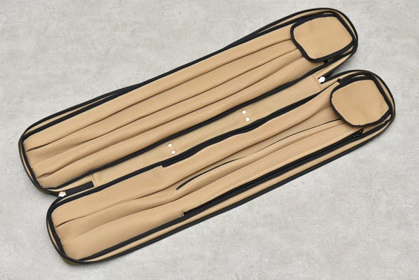 「本体の素材はインビスタ社のコーデュラナイロンを使用しているので、生地自体に高級感があり、強度面でも通常のナイロンの7倍という優れた耐久性を持っています。内装に使用したエアメッシュは生地にクッション性がありつつ通気性もあるので、ソフトケースには最適な素材だと思います。ただ、裁断や縫製などは通常の生地よりも手間がかかり、技術的に難しいのでメーカーとしては悩ましい所でした。ですが、この部分もキューショップジャパンさんから強くリクエストされて採用しました。こういった要望をいただけたことで、よりユーザー目線に沿った選択が出来たのではないかと思います」