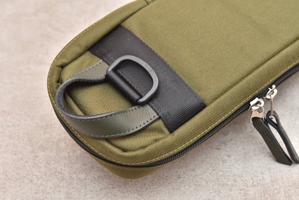 「今まで販売してきたソフトケースはほぼカラーコンビでしたので、今回の様なシンプルな単色カラーは初めてです。最近はファッションのデザイン的に、よりシンプルな物が好まれる傾向にあり、そういった流れの中でこの色が選ばれたと感じています。このカーキには若干ミリタリーテイストが入っています」