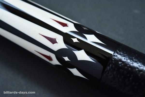 赤い材料とシルバーのインレイ。