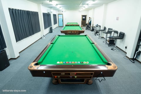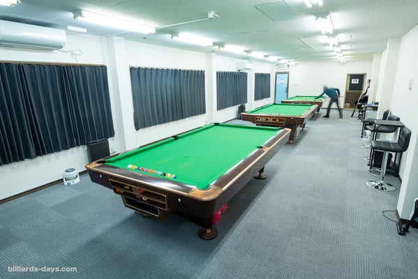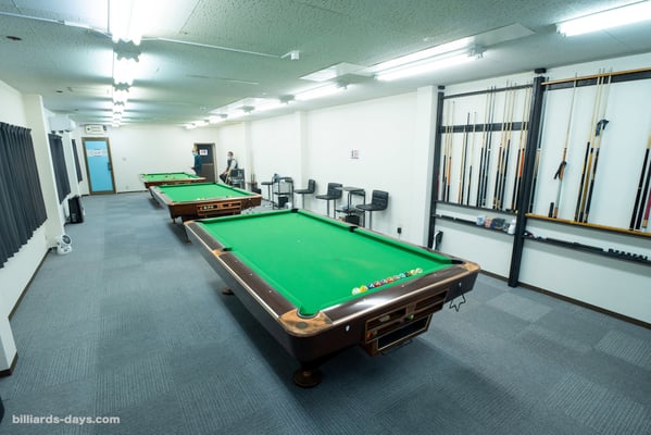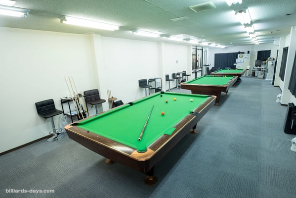 その一角に、テーブル3台のビリヤード場、