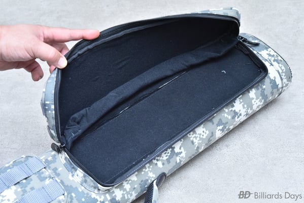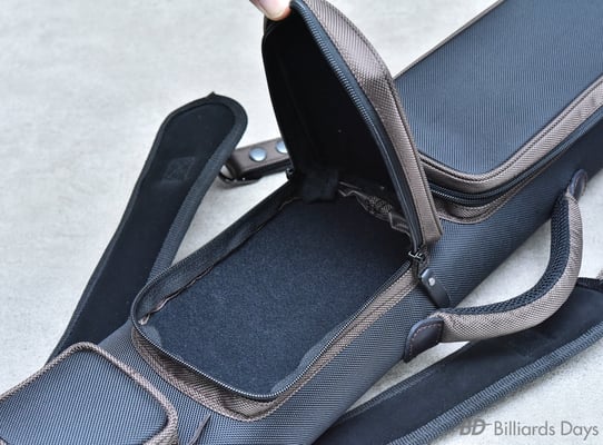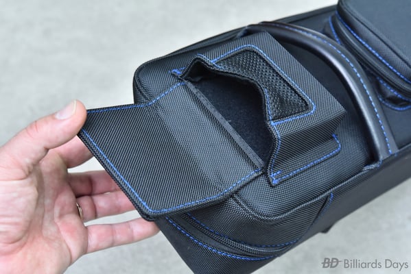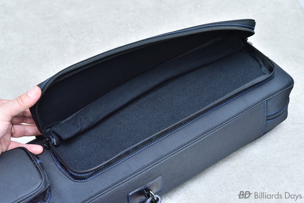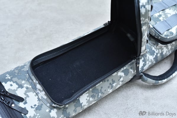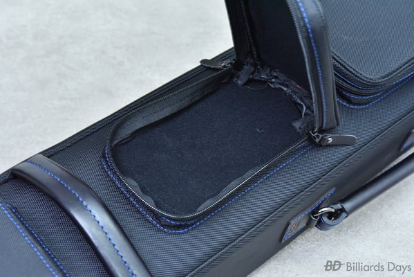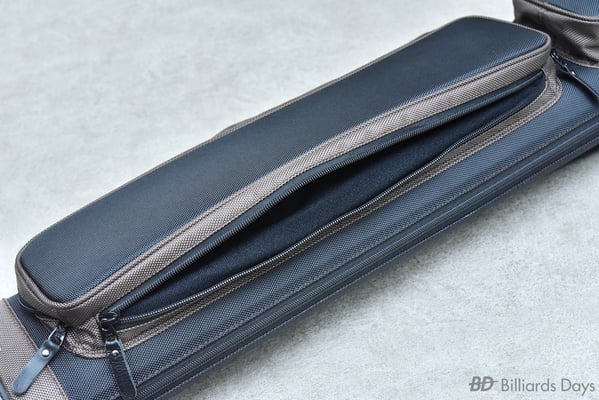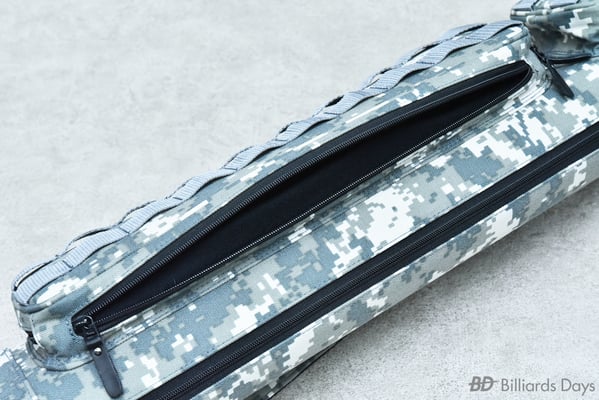 キュー収納部は、本体側面のジッパーを